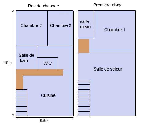Plan du gîte : Rez-de-chaussée, premier étage, chambres, douche, salle de bains, salle de séjour,etc.